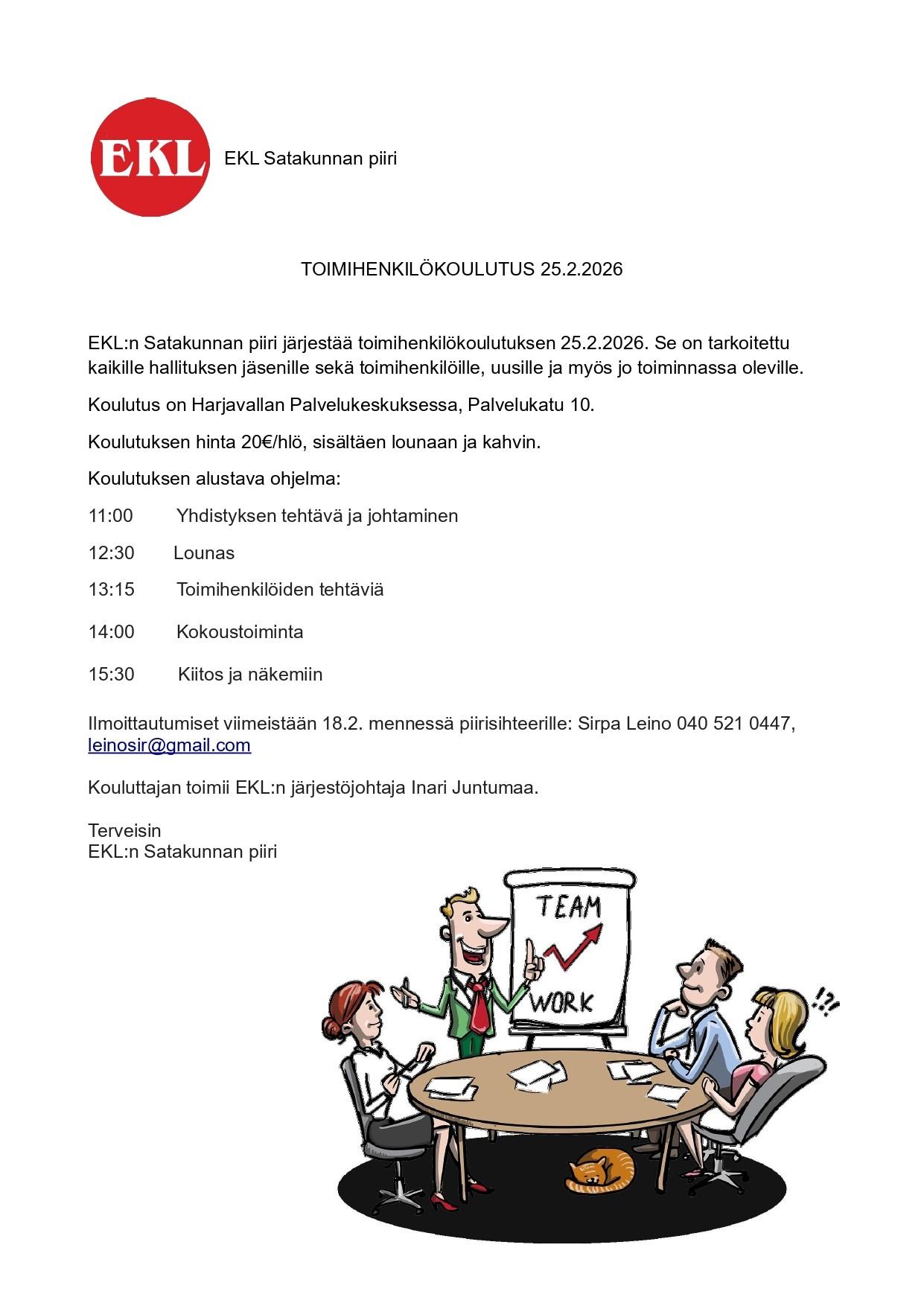 EKLn Satakunnan piirin järjestää yhdistysten toimihenkilöille koulutuksen. Se on suunnattu kaikille toimihenkilöille, hiljakkoin mukaan tulleille, sekä jo toiminnassa aiemmin mukana olleille. Päivän…