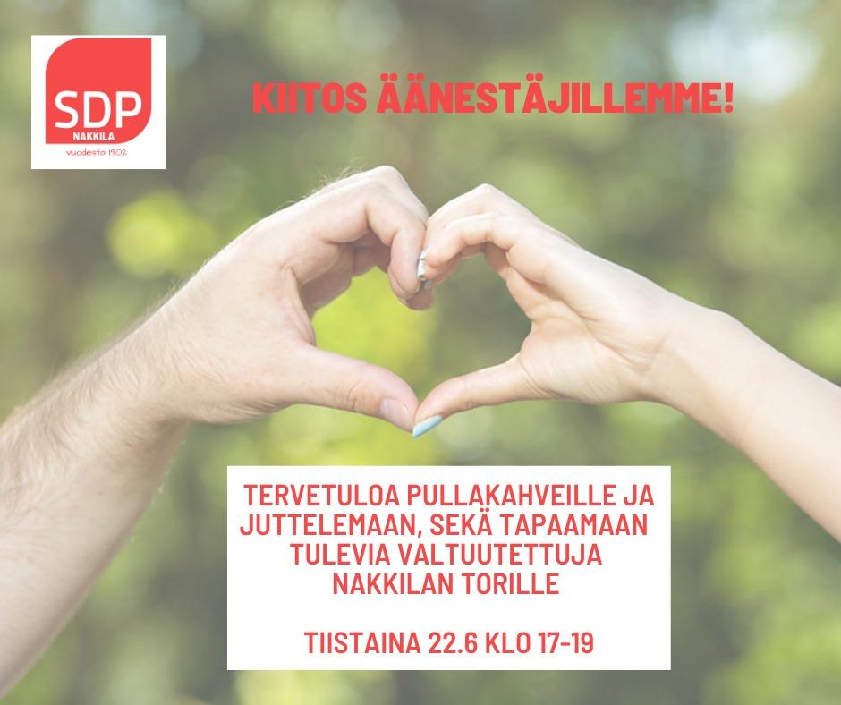 Nakkilan työväenyhdistys kutsuu kuntalaisia kesäkahville tiistaina 22.62021 klo 17:00–19:00.