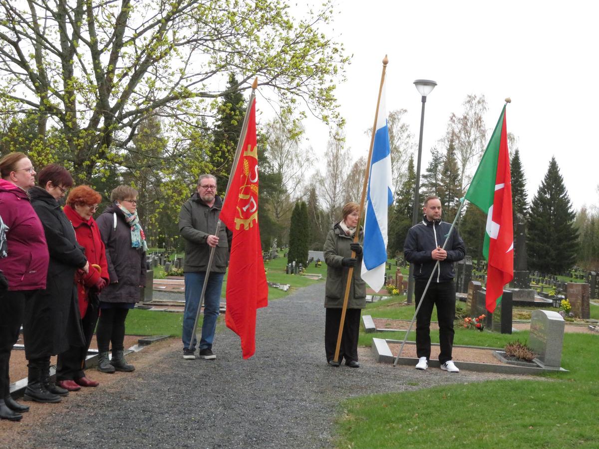 Puhe ja kukkalaitteen lasku sekä hiljainen kunnioituksen hetki edesmenneiden kalliille elämälle.