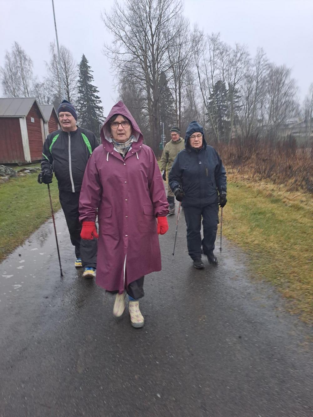 Vuoden viimeinen liikuntakerhon kokoontuminen keräsi viisi osallistujaa. Saldona se oli erinomainen huomioiden missä hurjassa säässä lenkkeiltiin. Sivuutettaessa kotiseutumuseon idyllistä aluetta kuntoilijoiden edessä aukeni valtava vesieste, yksissä äänin puhuttiin "3000 metrin estejuoksusta" Nakkilan liikuntakeskuksella.