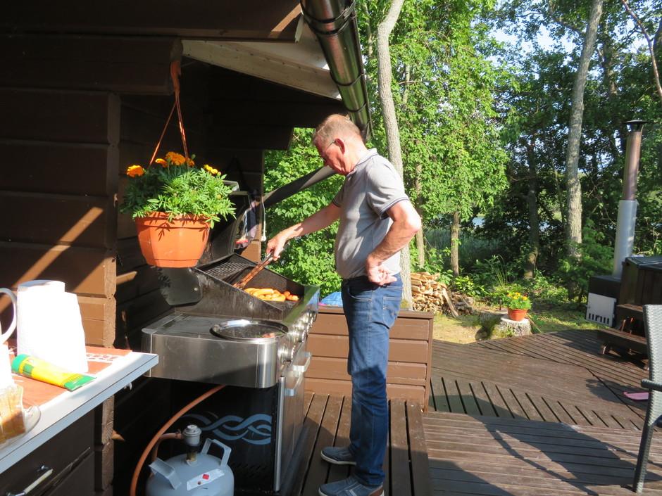 Seppo Tarkkanen grillaamassa.