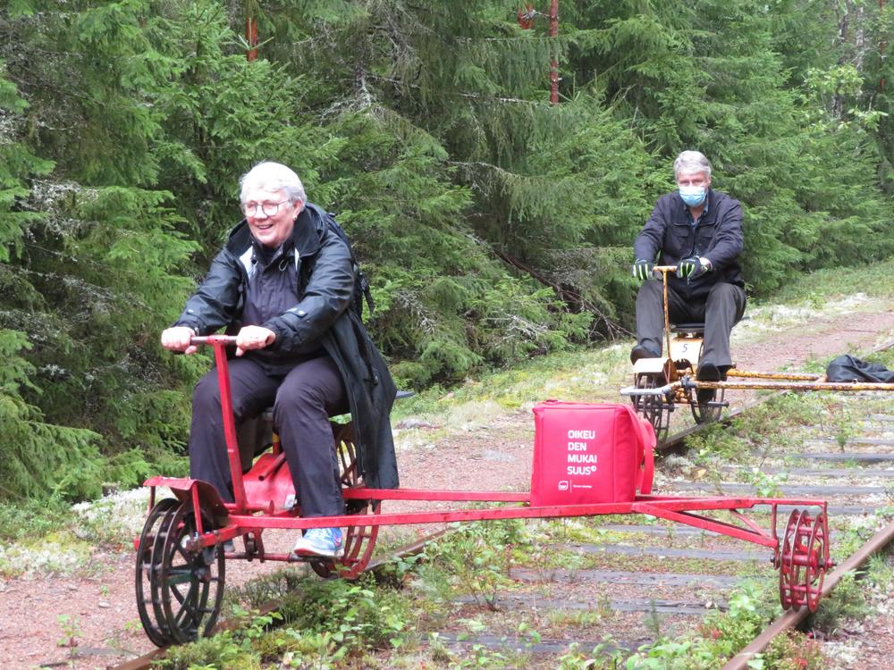 Resiina on ketterä ratakulkuneuvo ja matka taittuu hyvää vauhtia. Paluumatkan keskinopeudeksi mitattiin 8,5 km/t.