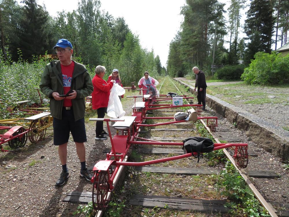 Pomarkun ratapihalla järjestäydyttiin lähtöön ja pakattiin resiinoihin pienet matkatavarat.