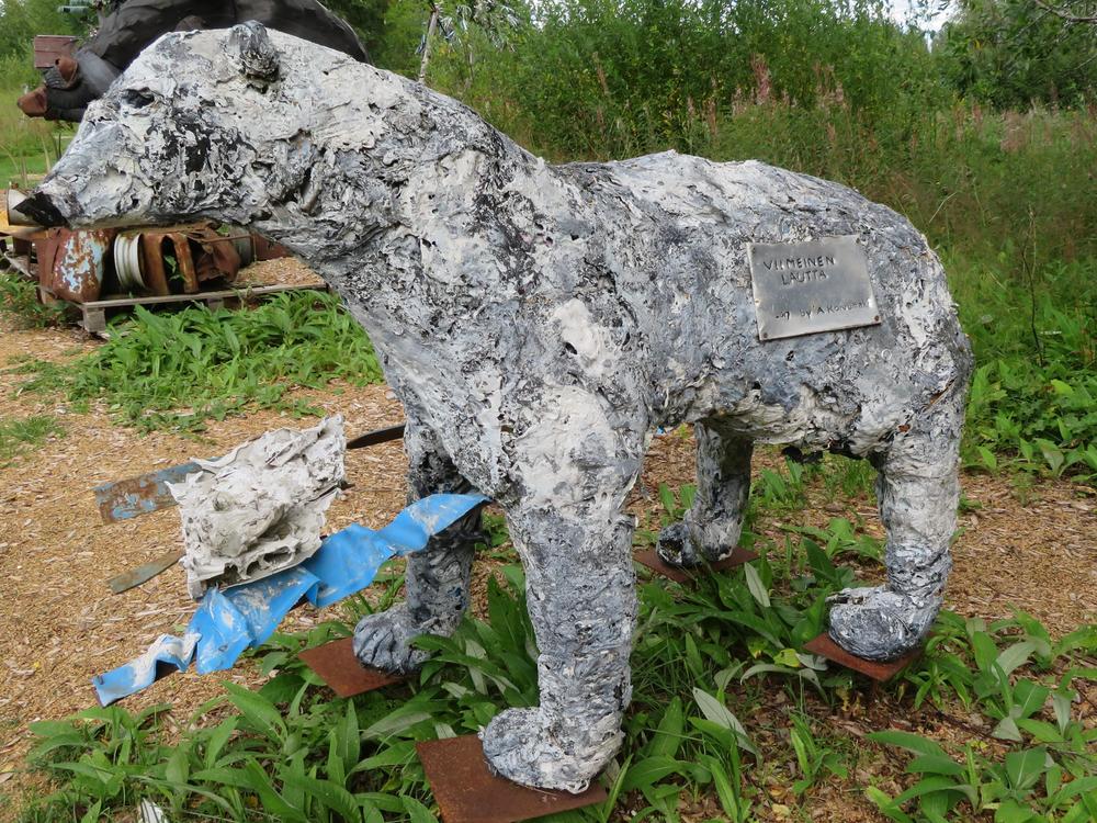 Vuoden 2023 Itsetaiteilja Alpo Koivumäen Savanni herätti keskustelua. Tässä jääkarhun edessä on "viimeinen lautta," se kuvaa luonnon hätätilaa ja sitä kuinka napajäätiköt sulavat
