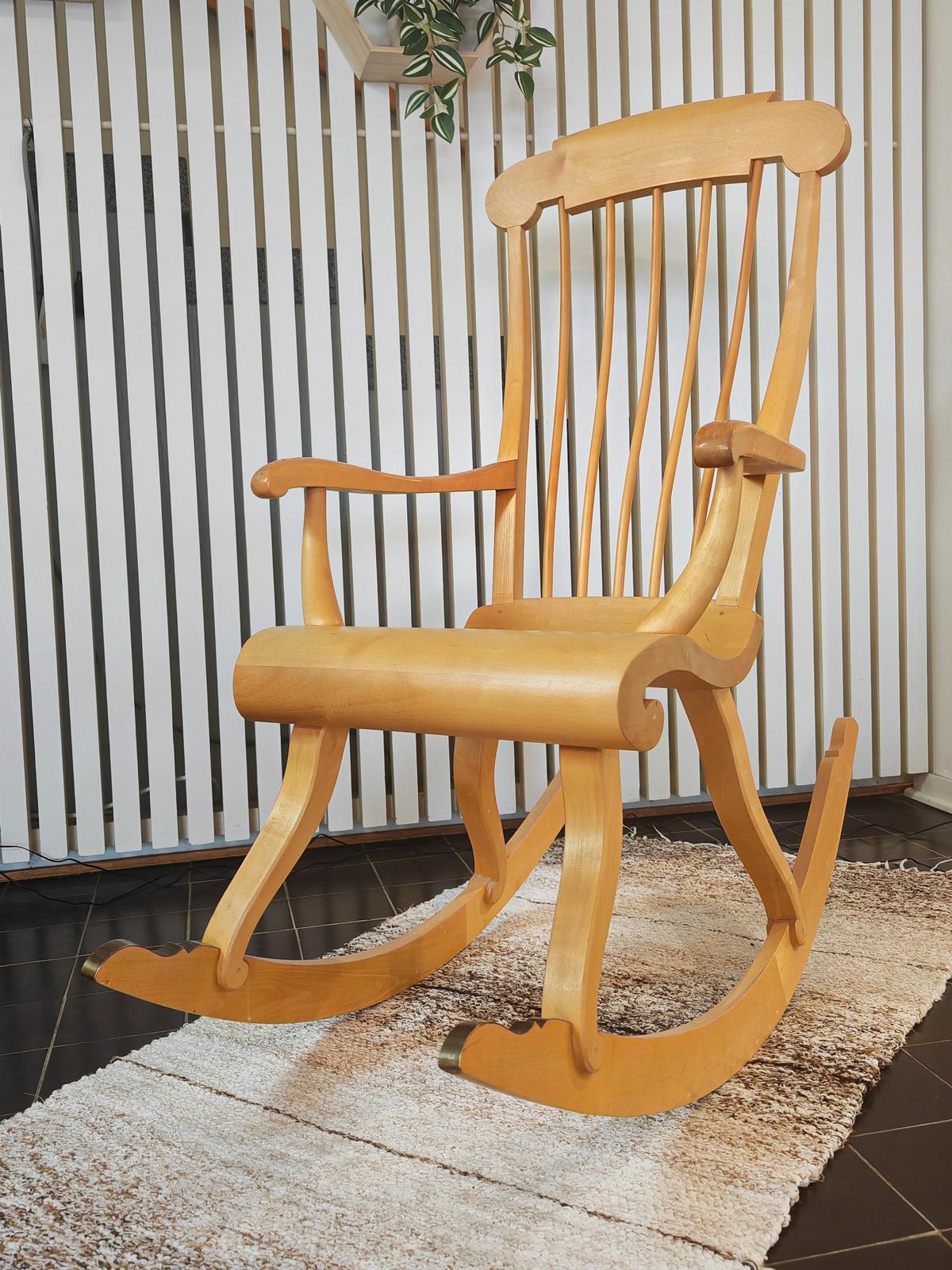 Keinutuolimestari Kari-Pekka Kankerin valmistama nakkilalainen keinutuoli kunnantalon yläaulassa Kuva Maria Salo viestintäsiantuntija Nakkilan kunta